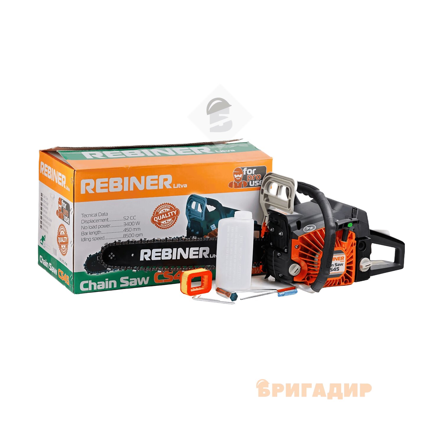 Rebiner CS45 Бензопила 3400Вт, 25куб, ЛАНЦЮГ OREGON