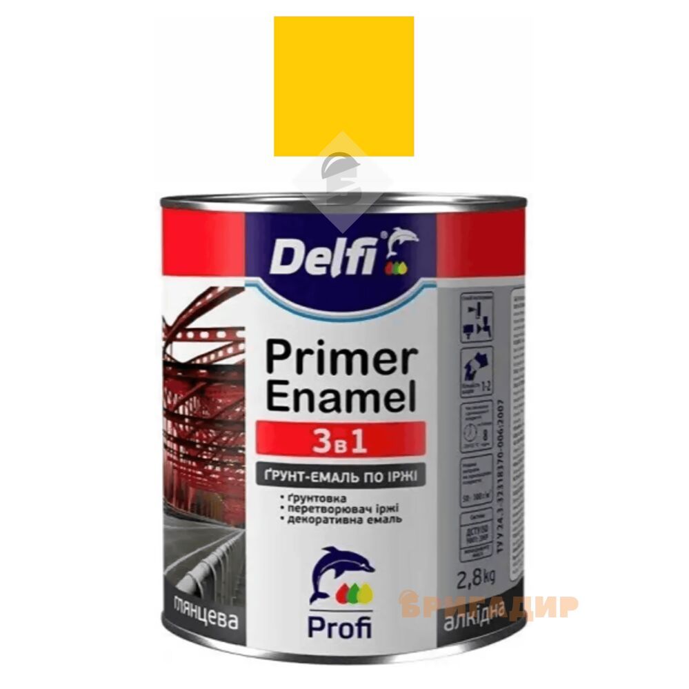 Характеристики Грунт-емаль по іржі 3 в 1, жовта ТМ "Delfi"-2,8кг